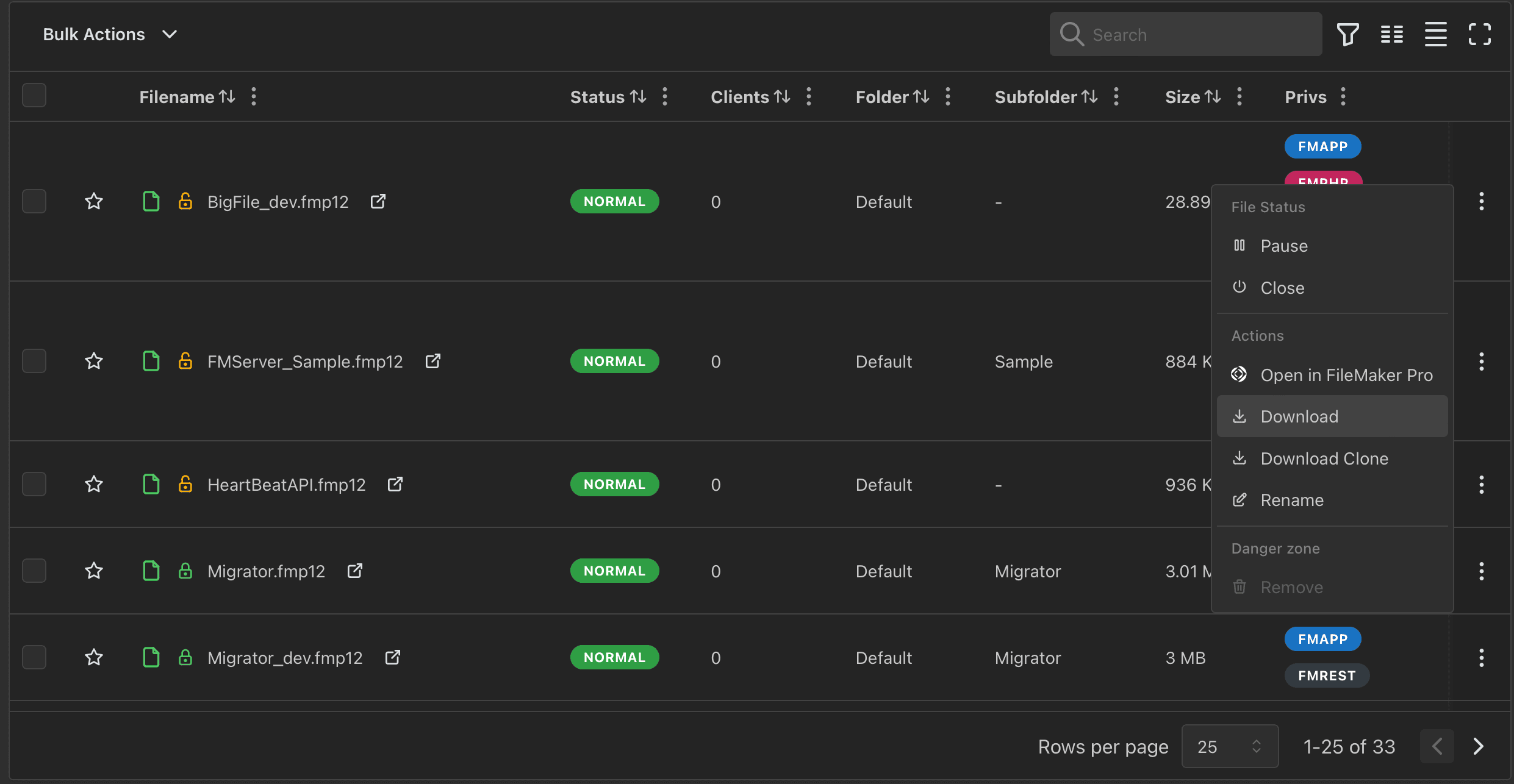 Using the Ottomatic Cloud Console, you're able to download a copy or clone of your hosted FileMaker files, on demand.