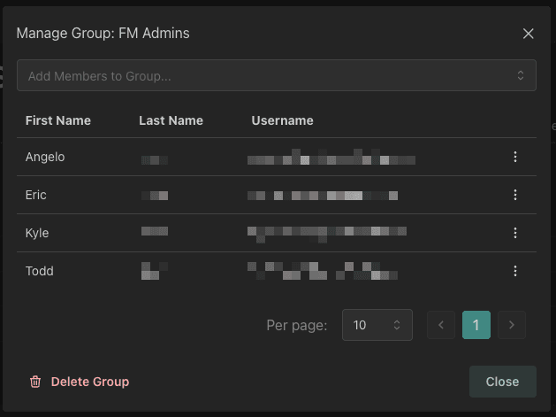 From the Groups tab, you can click on a group to open up a dialog that allows for user management for that group